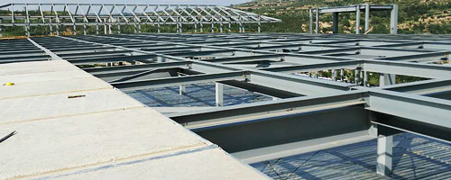 鋼骨架輕型板適用于輸煤棧橋、公共民用等建筑圍護屋面、樓面、墻面.鋼骨架輕型板由輕型鋼骨架、冷拔鋼絲網、改性水泥珍珠巖復合芯材(專有技術)、復合抗?jié)B耐磨涂層(專有技術)組成.鋼骨架輕型板集輕質、承重、節(jié)能、防火、隔聲、泄爆、抗震等功能于一體,既保持了傳統鋼筋混凝土構件安全度高、使用壽命長的優(yōu)點,又滿足了現代建筑對輕質、節(jié)能、環(huán)保的要求。