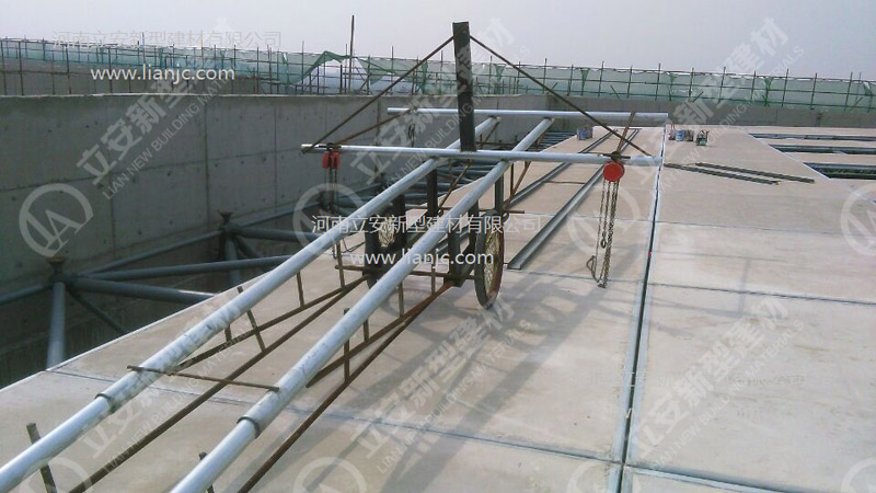 鋼骨架輕型板適用于輸煤棧橋、公共民用等建筑圍護屋面、樓面、墻面.鋼骨架輕型板由輕型鋼骨架、冷拔鋼絲網、改性水泥珍珠巖復合芯材(專有技術)、復合抗?jié)B耐磨涂層(專有技術)組成.鋼骨架輕型板集輕質、承重、節(jié)能、防火、隔聲、泄爆、抗震等功能于一體,既保持了傳統鋼筋混凝土構件安全度高、使用壽命長的優(yōu)點,又滿足了現代建筑對輕質、節(jié)能、環(huán)保的要求。